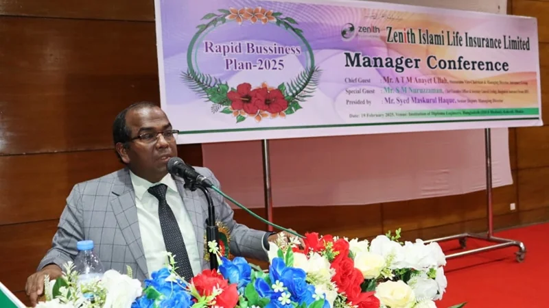 রাজধানীর আইডিইবি ভবনে আজ ১৯ ফেব্রুয়ারি ২০২৫ বুধবার জেনিথ ইসলামী লাইফের ম্যানেজার কনফারেন্সে বিশেষ অতিথির বক্তব্যে তিনি এসব কথা বলেন। অনুষ্ঠানে সভাপতিত্ব করেন কোম্পানির সিনিয়র ডিএমডি সৈয়দ মাসকুরুল হক। অনুষ্ঠানে প্রধান অতিথি ছিলেন কোম্পানির ভাইস-চেয়ারম্যান এ টি এম এনায়েত উল্লাহ।