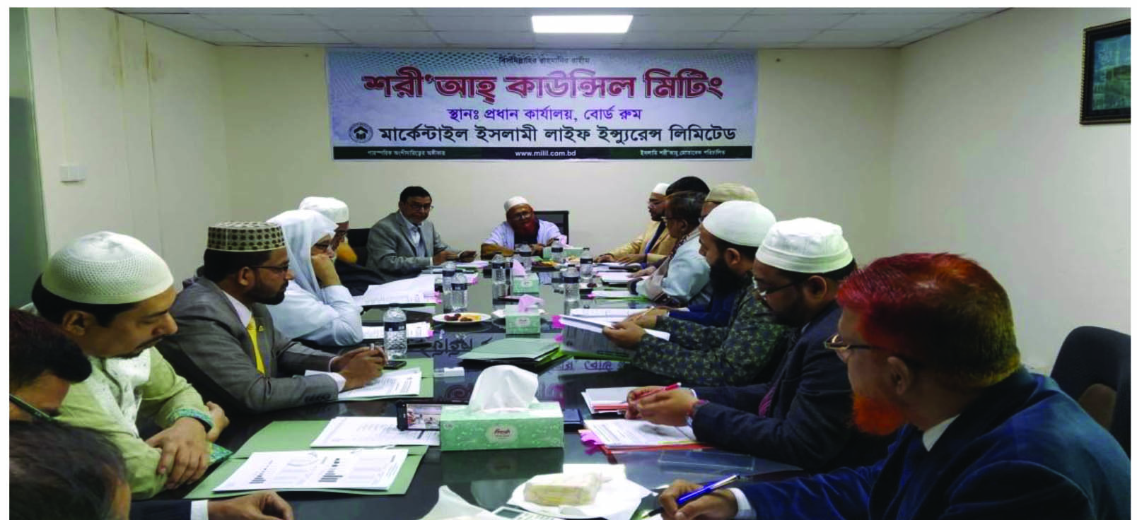 মার্কেন্টাইল ইসলামী লাইফ ইনস্যুরেন্স লিমিটেড এর শরিআহ্ কাউন্সিল মিটিং কোম্পানীর প্রধান কার্যালয়ের বোর্ড রুমে অনুষ্ঠিত হয়। উক্ত সভায় সভাপতিত্ব করেন শরীআহ্ কাউন্সলের মাননীয় চেয়ারম্যান মুফতি সাইয়েদ আহমেদ মুজাদ্দেদী,হেড মুফতি, মাদ্রাসা ই ফুরফুরা, দারুস সালাম, মীরপুর,ঢাকা। সভায় উপস্থিত ছিলেন মার্কেন্টাইল ইসলামী লাইফ ইনস্যুরেন্স লিমিটেড এর পরিচালনা পর্ষদের মাননীয় উপদেষ্টা ও কোম্পানীর প্রতিষ্ঠাতা এম কামাল উদ্দিন, মাননীয় পরিচালক এম নাছির উদ্দীন । এছাড়া আরোও উপস্থিত ছিলেন অধ্যাপক এম মুজাহিদুল ইসলাম, ব্যাংকিং এন্ড ইন্স্যুরেন্স বিভাগ, ঢাকা বিশ্ববিদ্যালয়। অধ্যাপক মাওলানা এবিএম মাছুম বিল্লাহ, সেক্রেটারী জেনারেল, সেন্ট্রাল শরীআহ কাউন্সিল ফর ইসলামিক ইন্স্যুরেন্স অব বাংলাদেশ। ড. মুহাম্মদ ঈসা শাহেদী, সম্পাদক, অনুবাদক ও পরিচালক বায়তুশ শরফ মাদ্রাসা, ঢাকা।মুফতি মুহিবুল্লাহ হিল বাকী, সিনিয়র পেশ ইমাম, জাতীয় মসজিদ বায়তুল মোকাররম, ঢাকা। মোহাম্মদ আক্তারুজ্জামান, ডিএমডি এন্ড সিএফও। শেখ আব্দুর রশিদ, ডিএমডি। মোঃ মজিবুল মাওলা লিটন, এএমডি।মোহাম্মদ আলী, কোম্পানী সেক্রেটারী। মোঃ সালাহউদ্দীন, সদস্য সচিব- শরীআহ কাউন্সিল। এছাড়া কোম্পানীর বিভাগীয় প্রধানগন এসময় উপস্থিত ছিলেন। সভায় শরিআহ্ কমপ্লায়েন্স প্রতিবেদন উপস্থাপন করেন কোম্পানীর মুখ্য নির্বাহী কর্মকর্তা জনাব মোহাম্মদ সাইদুল আমিন । সভায় কাউন্সিল কোম্পানীর শরীআহ্’র সার্বিক কার্যক্রম নিয়ে বিভিন্ন দিক নির্দেশনা প্রদান করেন।