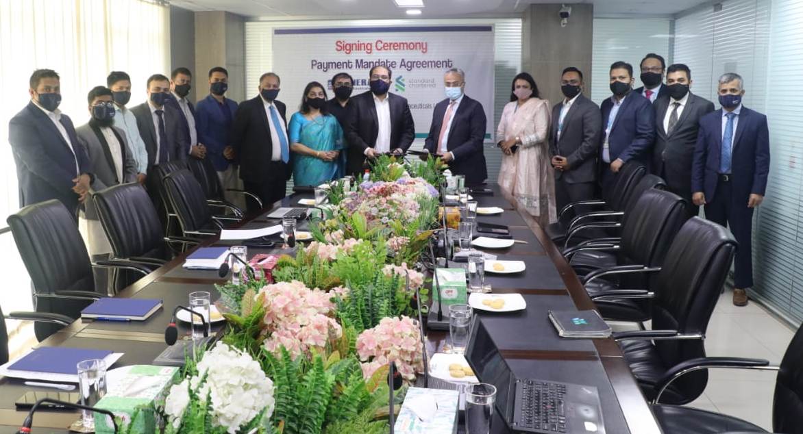 স্ট্যান্ডার্ড চার্টার্ড-এর স্ট্রেট-টু-ব্যাংক নেক্সটজেন-এ তাদের প্রথম অনলাইন পেমেন্ট লেনদেন সম্পন্ন করলো দেশের অন্যতম প্রধান ফার্মাসিউটিক্যাল প্রতিষ্ঠান জেনারেল ফার্মাসিউটিক্যাল লিমিটেড (জিপিএল)। লেনদেন-এর পূর্বে স্ট্যান্ডার্ড চার্টার্ড লিমিটেড এবং জিপিএল-এর মধ্যে একটি অনলাইন পেমেন্ট চুক্তি স্বাক্ষরিত হয়। এই চুক্তি অনুযায়ী স্ট্যান্ডার্ড চার্টার্ড-এর স্ট্রেট-টু-ব্যাংক নেক্সট জেন-এর মাধ্যমে পেমেন্ট করতে পারবে জিপিএল। স্ট্রেট-টু-ব্যাংক নেক্সটজেন স্ট্যান্ডার্ড চার্টার্ড-এর একটি উদ্ভাবনী ডিজিটাল ব্যাংকিং প্ল্যাটফর্ম যা গ্রাহকদের ফাইন্যান্সিয়াল সার্ভিসের অভিজ্ঞতাকে রূপান্তরিত করেছে। স্ট্রেট-টু-ব্যাংক নেক্সটজেন একটি বিস্তৃত অনলাইন প্ল্যাটফর্ম যার মাধ্যমে স্ট্যান্ডার্ড চার্টার্ড-এর সকল পণ্য ও সেবাগুলো গ্রাহকদের হাতের নাগালে থাকবে। পেমেন্ট-এর ক্ষেত্রে এই প্ল্যাটফর্মটিতে গ্রাহকরা পে-রোল, ভেন্ডর, কাস্টমস ডিউটি ইত্যাদি পেমেন্ট অনলাইনে করতে পারবে এবং সহজে সমন্বয়সাধনের জন্য রিয়েল- টাইম এমআইএস ব্যবহার করতে পারবেন।