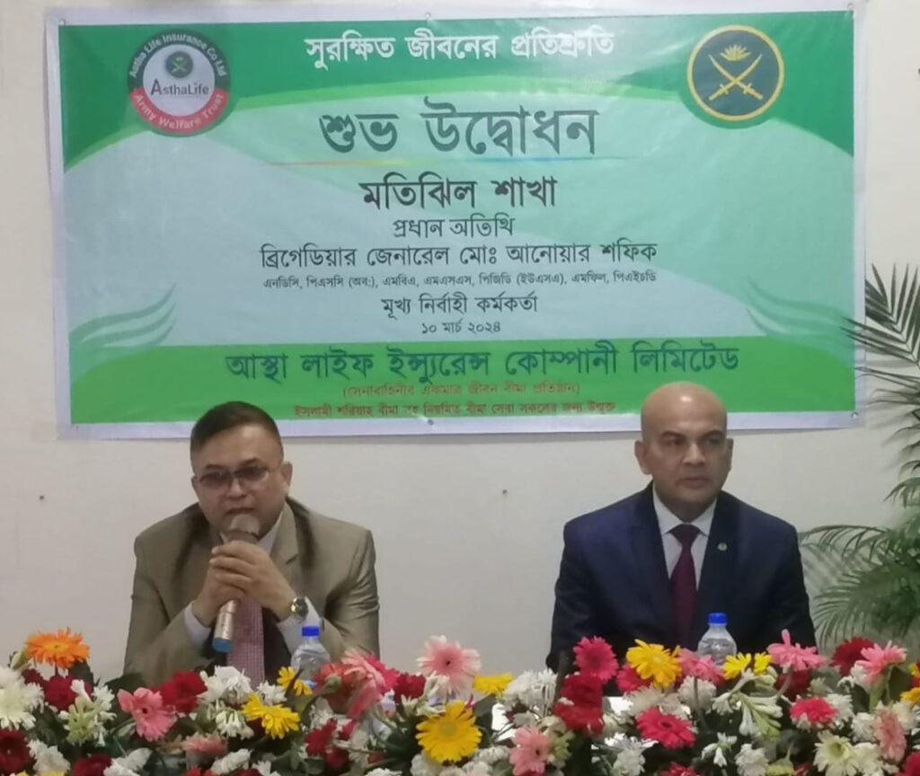 “সুরক্ষিত জীবনের প্রতিশ্রুতি” এই শ্লোগানকে সামনে রেখে মতিঝিলের বাণিজ্যিক এলাকায় সম্প্রতি আস্থা লাইফ ইন্স্যুরেন্স কোম্পানী লিমিটেড এর নতুন শাখা অফিস উদ্বোধন হয়েছে। ১০ মার্চ ২০২৪ রবিবার রাজধানীর মতিঝিল বাণিজ্যিক এলাকার ৬-মতিঝিল ঠিকানাস্থ ভূঁইয়া ম্যানশন এর ৬ষ্ঠ তলায় বাংলাদেশ সেনাবাহিনীর ওয়েলফেয়ার ট্রাস্ট এর একমাত্র জীবন বীমা প্রতিষ্ঠান আস্থা লাইফ ইন্স্যুরেন্স কোম্পানী লিমিটেড এর একটি শাখা অফিস আনুষ্ঠানিকভাবে উদ্বোধন করা হয়। উক্ত অনুষ্ঠানে আস্থা লাইফ ইন্স্যুরেন্স কোম্পানী লিমিটেড এর মুখ্য নির্বাহী কর্মকর্তা ব্রিগেডিয়ার জেনারেল মোঃ আনোয়ার শফিক, এনডিসি, পিএসসি (অবঃ), এমবিএ, এমএসএস, পিজিডি (ইউএসএ), এমফিল, পিএইচডি প্রধান অতিথি হিসেবে উপস্থিত ছিলেন। এছাড়াও উক্ত অনুষ্ঠানে বিভিন্ন জাতীয় ও স্থানীয় পত্রিকার সাংবাদিক, বিভিন্ন ব্যাংকের ঊর্ধ্বতন কর্মকর্তা, স্থানীয় গণ্যমান্য ব্যক্তি ও ব্যবসায়ীগণ প্রমুখ সহ আস্থা লাইফ ইন্স্যুরেন্স কোম্পানী লিমিটেড এর ঊর্ধ্বতন কর্মকর্তাগন উপস্থিত ছিলেন। উল্লেখ্য, আস্থা লাইফ ইন্স্যুরেন্স কোম্পানী সম্মানিত চেয়ারম্যান ও সেনাবাহিনী প্রধানের দক্ষ নেতৃত্বে পরিচালিত জীবন বীমার প্রতি সাধারণ মানুষের নির্ভরযোগ্যতা ও বিশ^াস ফেরাতে ‘নতুন ধারার বীমা’ সেবার অঙ্গীকার নিয়ে নিরলসভাবে কাজ করে যাচ্ছে।এছাড়াও প্রতিষ্ঠানটি ইতিমধ্যে আস্থা, নিয়মানুবর্তিতা, প্রতিশ্রুতি রক্ষা, স্বচ্ছতা ও দায়িত্বশীলতার শীর্ষ অবস্থানে থেকে বিরল দৃষ্টান্ত স্থাপনপূর্বক বীমা শিল্পে একটি নতুন ধারার স্মার্ট জীবন বীমা কোম্পানীর রোল মডেল হিসেবে অবদান রেখে চলছে।