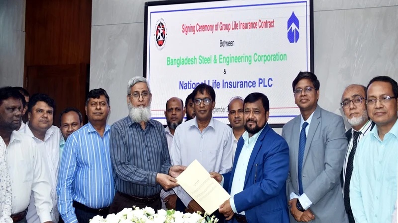 ন্যাশনাল লাইফ ইন্স্যুরেন্সের সাথে বাংলাদেশ ইস্পাত ও প্রকৌশল করপোরেশনের গ্রুপ বীমার চুক্তি সম্প্রতি স্বাক্ষরিত হয়েছে।