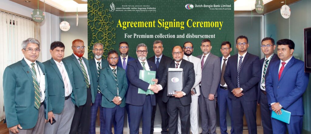 ইসলামি শরি’আহ ভিত্তিক জীবন বীমাকারী প্রতিষ্ঠান বেঙ্গল ইসলামি লাইফ ইন্স্যুরেন্স লিমিটেড ও ডাচ-বাংলা ব্যাংক লিমিটেড-এর মধ্যে গত ২২ মে, ২০২৩, সোমবার বেঙ্গল ইসলামি লাইফের প্রধান কার্যালয়ে একটি সমঝোতা স্মারক স্বাক্ষরিত হয়। এর ফলে বেঙ্গল ইসলামি লাইফের সম্মানিত বীমা গ্রাহকগণ এখন থেকে ডাচ-বাংলা ব্যাংক-এর মাধ্যমে সরাসরি তাঁদের প্রিমিয়াম জমাদান করতে পারবেন। এছাড়াও ডাচ-বাংলা ব্যাংক-এর নেক্সাস পে এবং মোবাইল ফিন্যান্সিয়াল সার্ভিস রকেট ব্যবহার করে কোন ধরনের ফি ছাড়াই তাঁদের প্রিমিয়াম জমাদান করতে পারবেন।