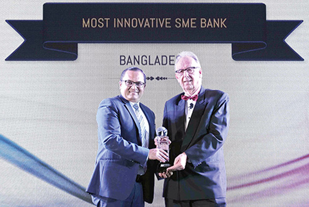 ইন্টারন্যাশনাল ফিন্যান্স পাবলিকেশন্স লিমিটেডের ‘মোস্ট ইনোভেটিভ এসএমই ব্যাংক’ অ্যাওয়ার্ড লাভ করেছে ব্র্যাক ব্যাংক লিমিটেড। ব্র্যাক ব্যাংকের এসএমই ব্যাংকিং বিভাগের প্রধান সৈয়দ আব্দুল মোমেন এক অনুষ্ঠানে ফিন্যান্স পাবলিকেশন্সের ডিরেক্টর সুনিল ভাটের কাছ থেকে এ পুরস্কার গ্রহণ করেন। থাইল্যান্ডের ব্যাংককের গ্রান্ড হায়াত ইরাওয়ান হোটেলে এ ‘ইন্টারন্যাশনাল ফিন্যান্স অ্যাওয়ার্ডস ২০১৮’ অনুষ্ঠানের আয়োজন করা হয়।