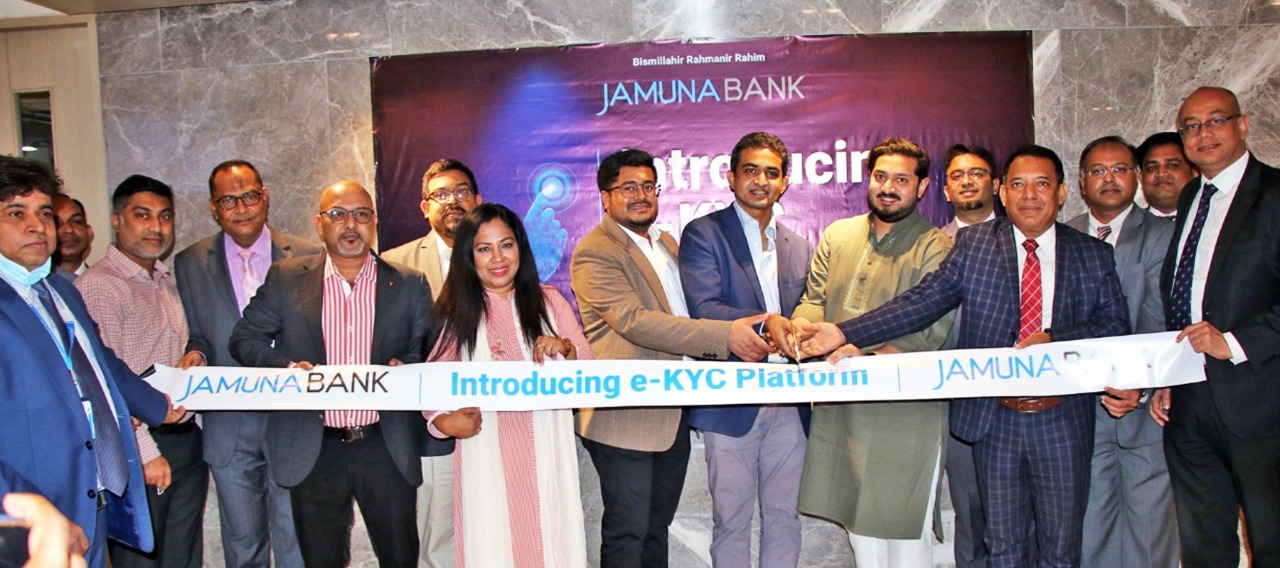 যমুনা ব্যাংক লিমিটেড কর্তৃক Electronic KYC (e-KYC) বাস্তবায়ন উপলক্ষে সম্প্রতি এর শুভ উদ্বোধন অনুষ্ঠানের আয়োজন করা হয়। উক্ত e-KYC Platform এর আনুষ্ঠানিক শুভ উদ্বোধন ঘোষণা করেন যমুনা ব্যাংক লিমিটেড এর সম্মানিত চেয়ারম্যান ও বোর্ড অব ডাইরেক্টরস্ এর সম্মানিত পরিচালক গাজী গোলাম আশরিয়া। এছাড়াও আলোচ্য অনুষ্ঠানে উপস্থিত ছিলেন যমুনা ব্যাংক লিমিটেড এর বোর্ড অব ডাইরেক্টরস্ এর সম্মানিত পরিচালক রেদোয়ান উল করিম আনসারী, যমুনা ব্যাংক লিমিটেড এর মাননীয় ব্যবস্থাপনা পরিচালক মির্জা ইলিয়াছ উদ্দিন আহমেদ, যমুনা ব্যাংক লিমিটেড এর উপব্যবস্থাপনা পরিচালক ও কেমেলকো এ.কে.এম. আতিকুর রহমান, উপব্যবস্থাপনা পরিচালক মোহাম্মদ ফজলুর রহমান চৌধুরী সহ ব্যাংকের প্রধান কার্যালয়ের ঊর্ধ্বতন কর্মকর্তা ও কর্মচারীবৃন্দ। e-KYC Platform এর আনুষ্ঠানিক ঘোষণার মাধ্যমে যমুনা ব্যাংক লিমিটেড হিসাব খোলার ক্ষেত্রে ডিজিটাল যুগে প্রবেশ করলো। শুধুমাত্র NID রয়েছে এরূপ গ্রাহকগণ e-KYC Platform ব্যবহার করে যেকোনো স্থান থেকে যমুনা ব্যাংকের যেকোনো শাখায় অতি সহজেই হিসাব খুলতে পারবেন।