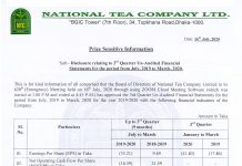 National Tea Company Ltd - Price Sensitive Information (3rd Quarter), 2019-20