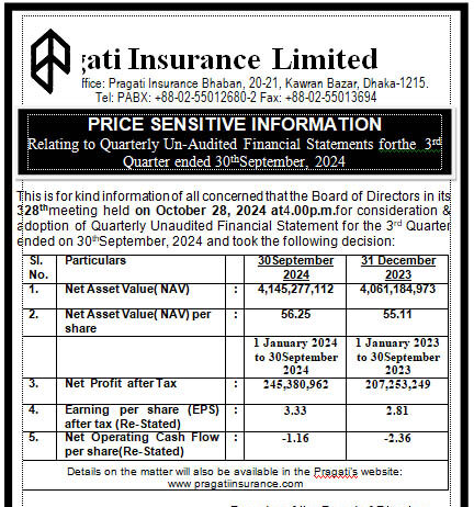 Pragati Life Insurance : Third Quarter Financial Statement 2024 (un-audited)