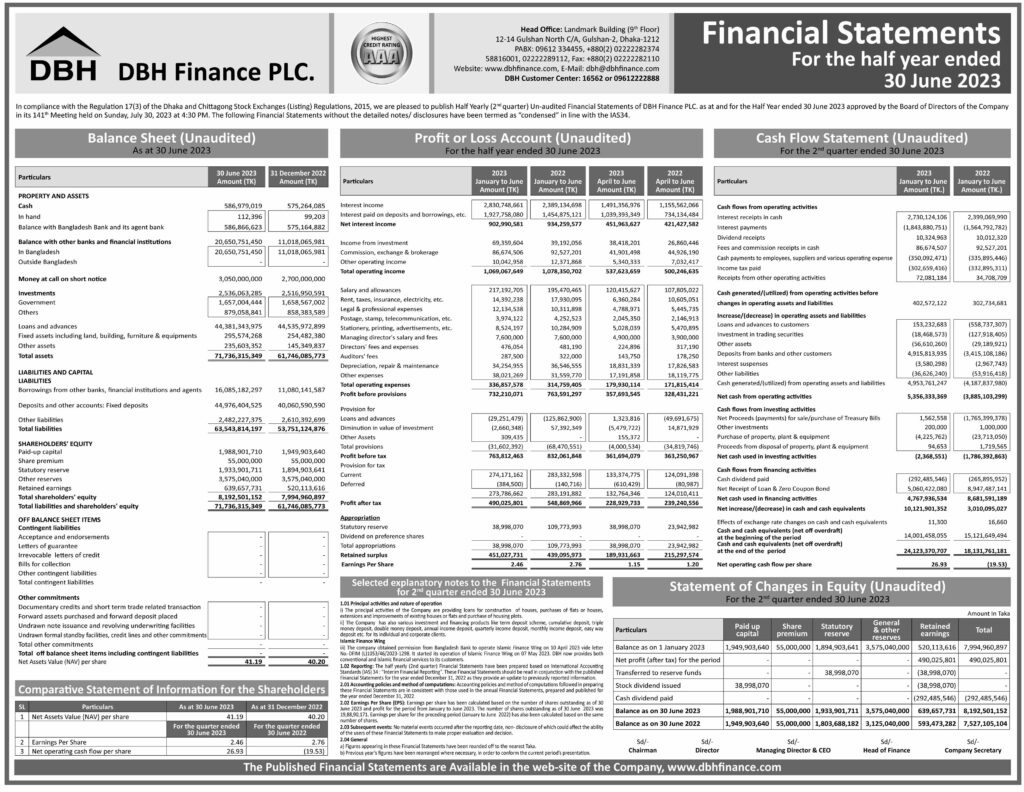 Financial Statements for the half year ended 30 June 2023. DBH Finance PLC.